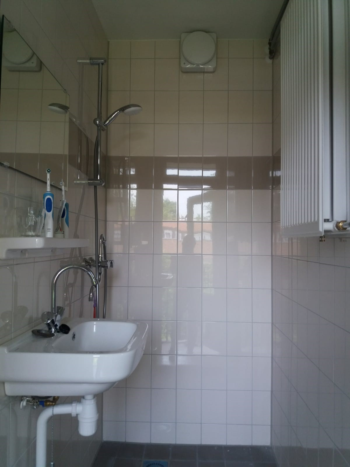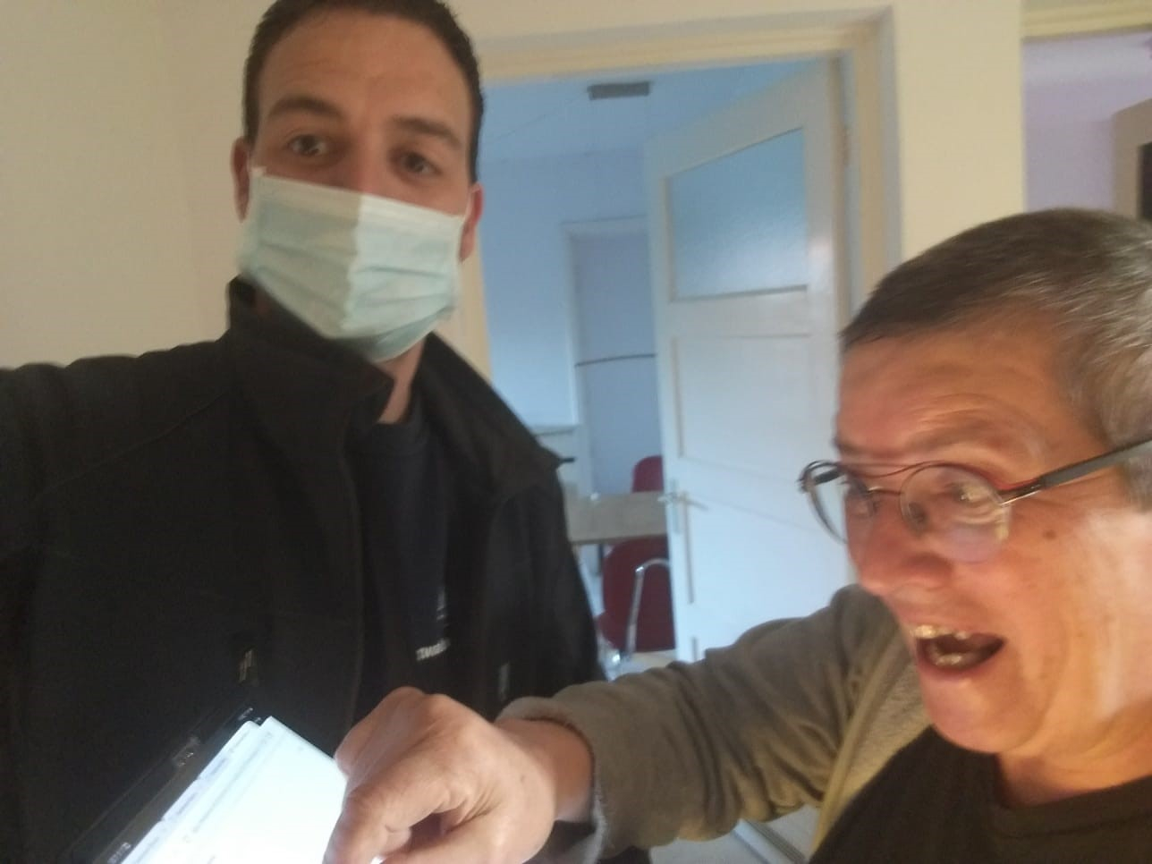 Er zat een radiator tegen een muur waar Maria tegeltjes had verwacht. Gelukkig kon ze het met bewonerscoach Twan meteen goed oplossen. Dat geldt ook voor de verhoogde drempel in de douche.'' Alsof ze een nieuwe St. Elisabethvloed verwachten'', aldus Maria. De mannen losten het op en maakten er weer een lage drempel van.