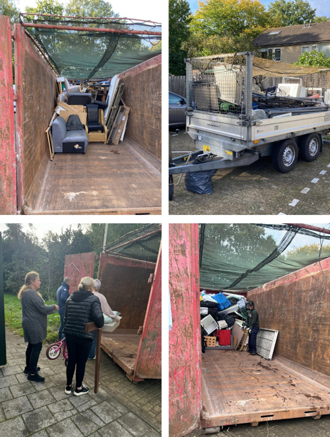 Dat ruimt lekker op! Want de bewoners konden grofvuil kwijt in de container die hiervoor speciaal door ons in de wijk is gezet. En deze container werd goed gevuld! Dat betekent dat de vakmannen snel aan de slag kunnen in opgeruimde woningen.