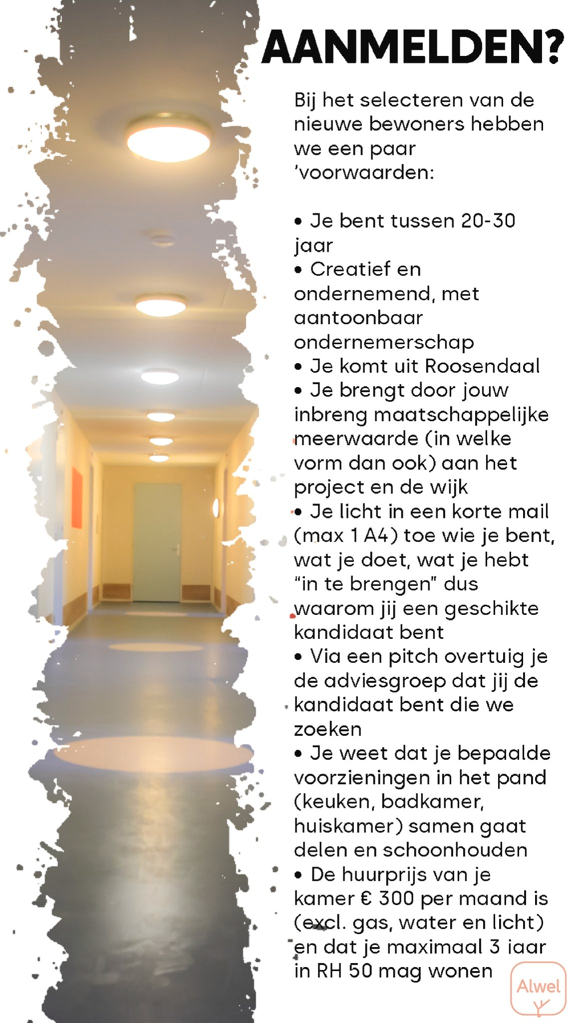 RH50 is een bijzonder jongerenproject aan de Rector Hellemonsstraat 50 in Roosendaal. Ben je tussen de 20 en 30 jaar en zoek je een perfecte plek om wonen en werken te combineren? Wij hebben deze ruimte beschikbaar!