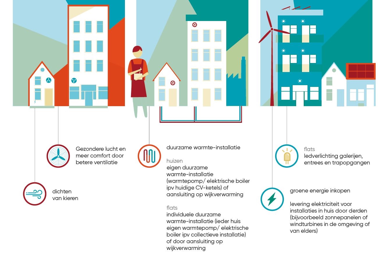 In Breda loopt een proef in Geeren Zuid, waarbij we de bewoners van onze huizen aanbieden om een pakket zonnepanelen te plaatsten. Hiervoor betalen zij een kleine huurverhoging. Als deze proef slaagt, wordt dit in 2019 ook in Roosendaal en Etten-Leur aangeboden. Wij bepalen dan welke huizen daarvoor in aanmerking komen. Wil je zelf panelen kopen en laten plaatsen? Dat kan als Zelf Aangebrachte Voorziening (ZAV). Meer informatie op www.Alwel.nl